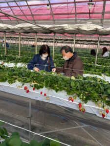 その後、角長さんでお醤油発祥の地の歴史を聞き、中野酒造さんで梅酒作り体験、渡辺農園さんでいちご狩りをしました。